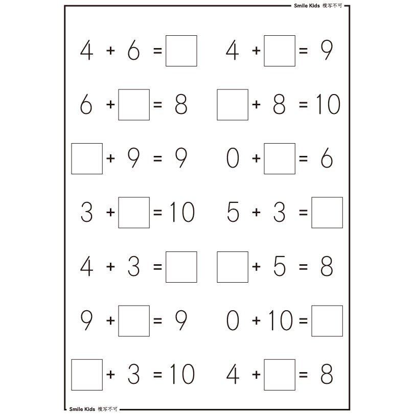 特に幼児・小学1年生では、10までのたし算を身につけることで、この後の繰り上がり、繰り下がりの学習がスムーズになります。